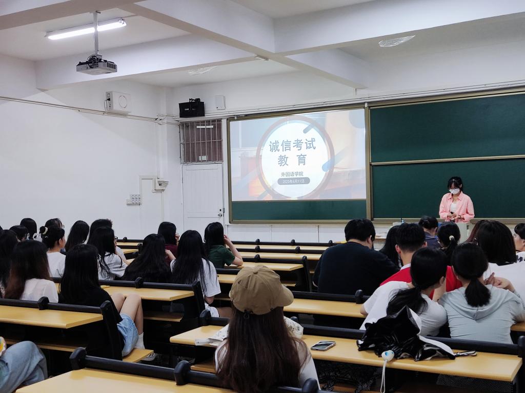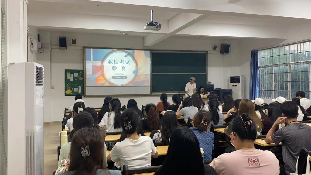 为营造诚信有序的考试氛围,促进员工诚信学习、诚信做事、诚信考试,太阳成集团tyc于6月11日晚在6栋及7栋教学楼开展诚信考试教育主题班会,20至22级同学参会。
