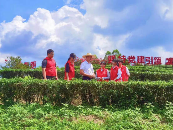 为响应“百千万工程”,助力乡村振兴工作部署,公司党员服务中心“语”党同行·志愿服务队在公司党总支书记冉海涛、太阳成集团tyc员工党支部组织员袁琳琳老师以及余蓝曦老师的指导下,队长朱嘉梅同志的带领下,于7月5日前往湛江市廉江市长山镇进行实地考察调研,切身探访茶企、调研茶品、品读茶文化。廉江市长山镇谷邦村村委党支部书记廖明纪、长山镇镇党委委员团委书记陈景华、团委副书记林荣勰以及镇团委干部廖鸿鑫莅临指导讲解。