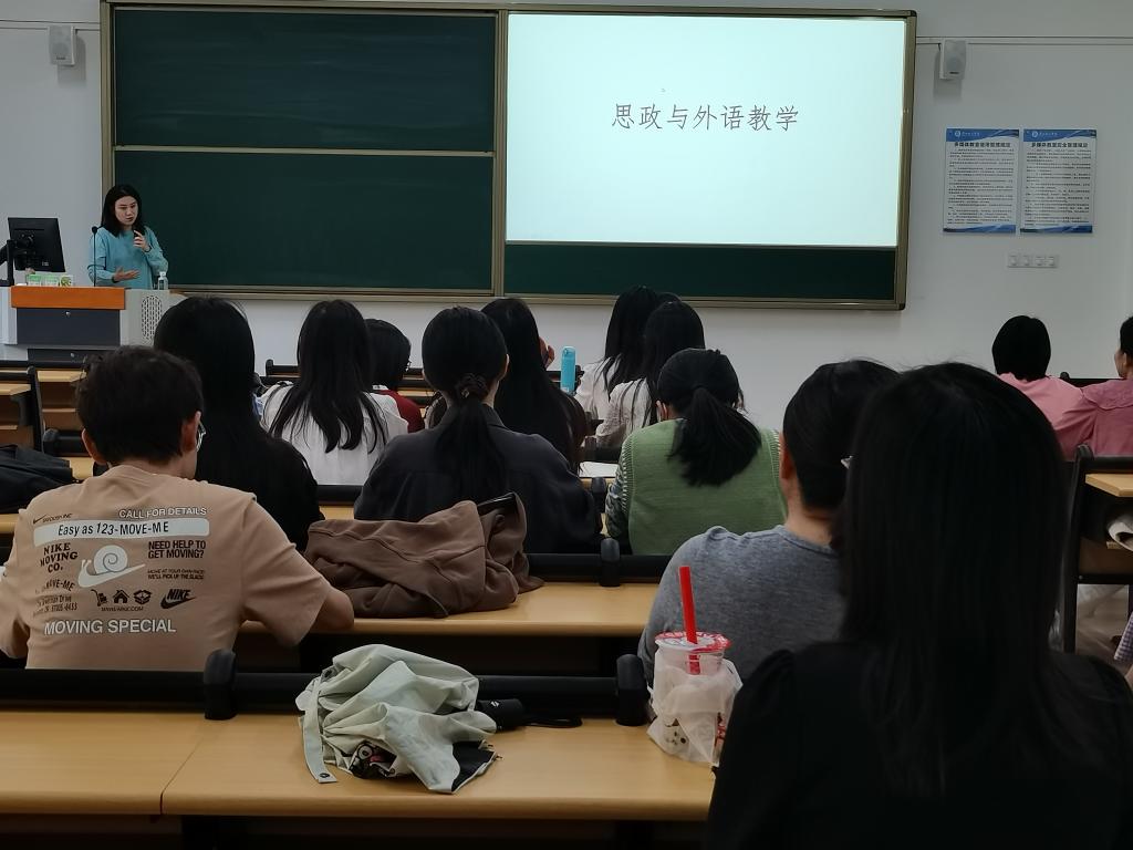 范博士首先向教师们讲述自己作为一个在国外生活了八年的新教师做课程思政的心路历程,然后用她自己做的课堂设计为案例,直观明了地讲解教什么是课程思政,如何把课程思政润物细无声地融入英语课程教学,让新入职的教师们对课程思政课程概念以及课程设计有了全新的认识和理解。