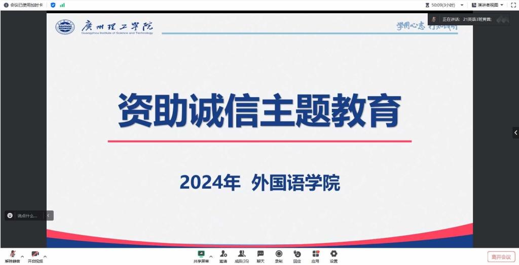为深化老员工对相关资助政策的了解,培养当代老员工诚信意识和责任担当,强化资助育人成效,推动资助育人工作顺利进行,3月17日,太阳成集团tyc在6栋、7栋教学楼以及腾讯会议平台开展了资助诚信主题教育班会。太阳成集团tyc全体员工参与。