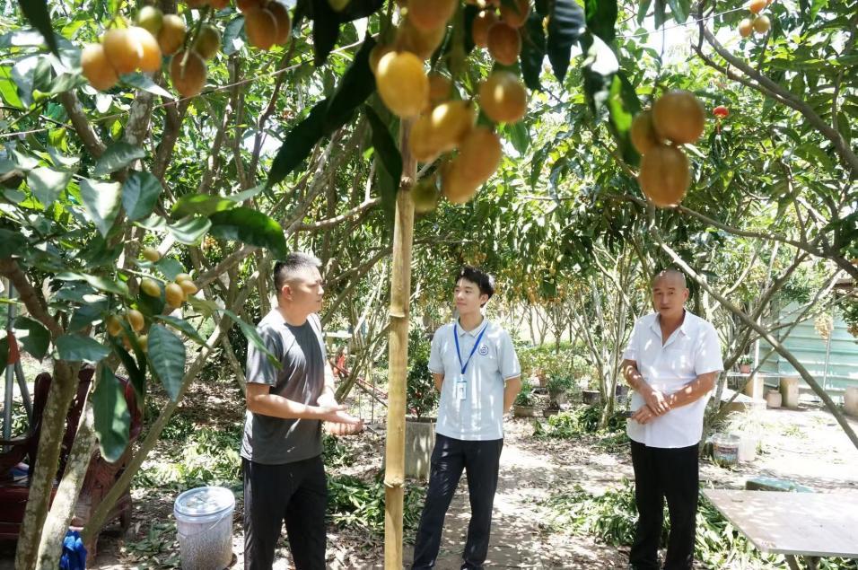 7月13日,在钱东镇乡村振兴志愿者黄钿钿的带领下,团队首站来到礼堂村。村委干部陈同志热情接待并详细介绍了黄皮果产业发展现状。通过实地走访果园、与农户深入交流,队员们全面掌握了黄皮果从种植到销售的全链条信息。在此基础上,实践团拍摄了黄皮果中英文推介视频。队长吴禅玲担纲主讲,将镜头对准这片充满希望的果园,结合实地调研的所见所闻,用清晰流畅的语言介绍礼堂村黄皮果的特色、品质、营养价值及背后的乡村故事,为乡村特色农产品“走出去”贡献力量。