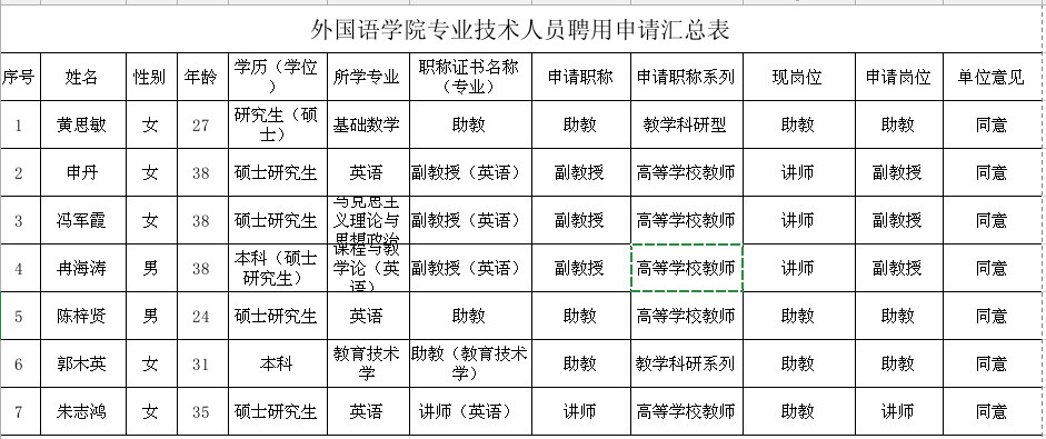 关于冯军霞等7位老师申请专业技术岗人员聘用的公示