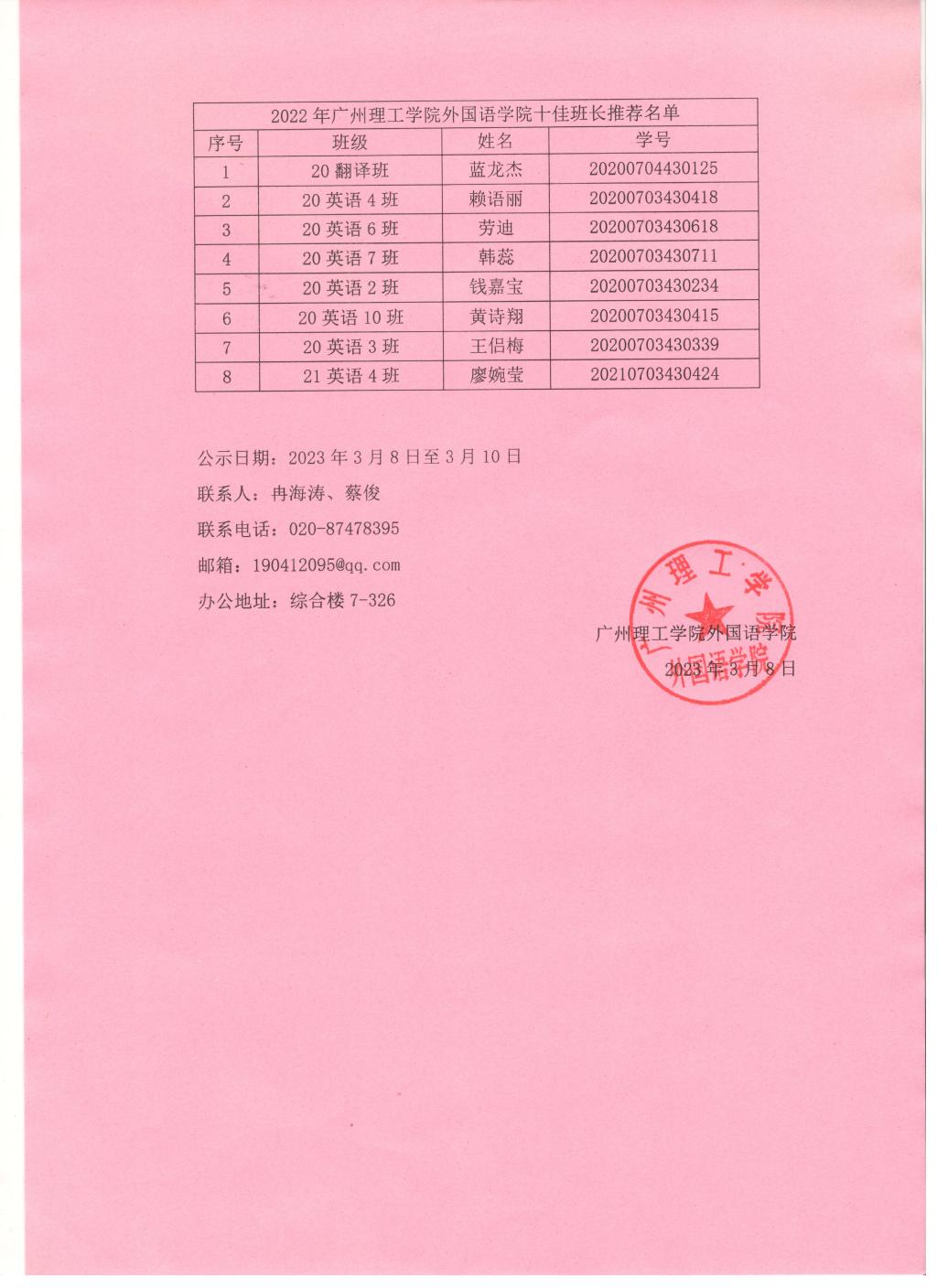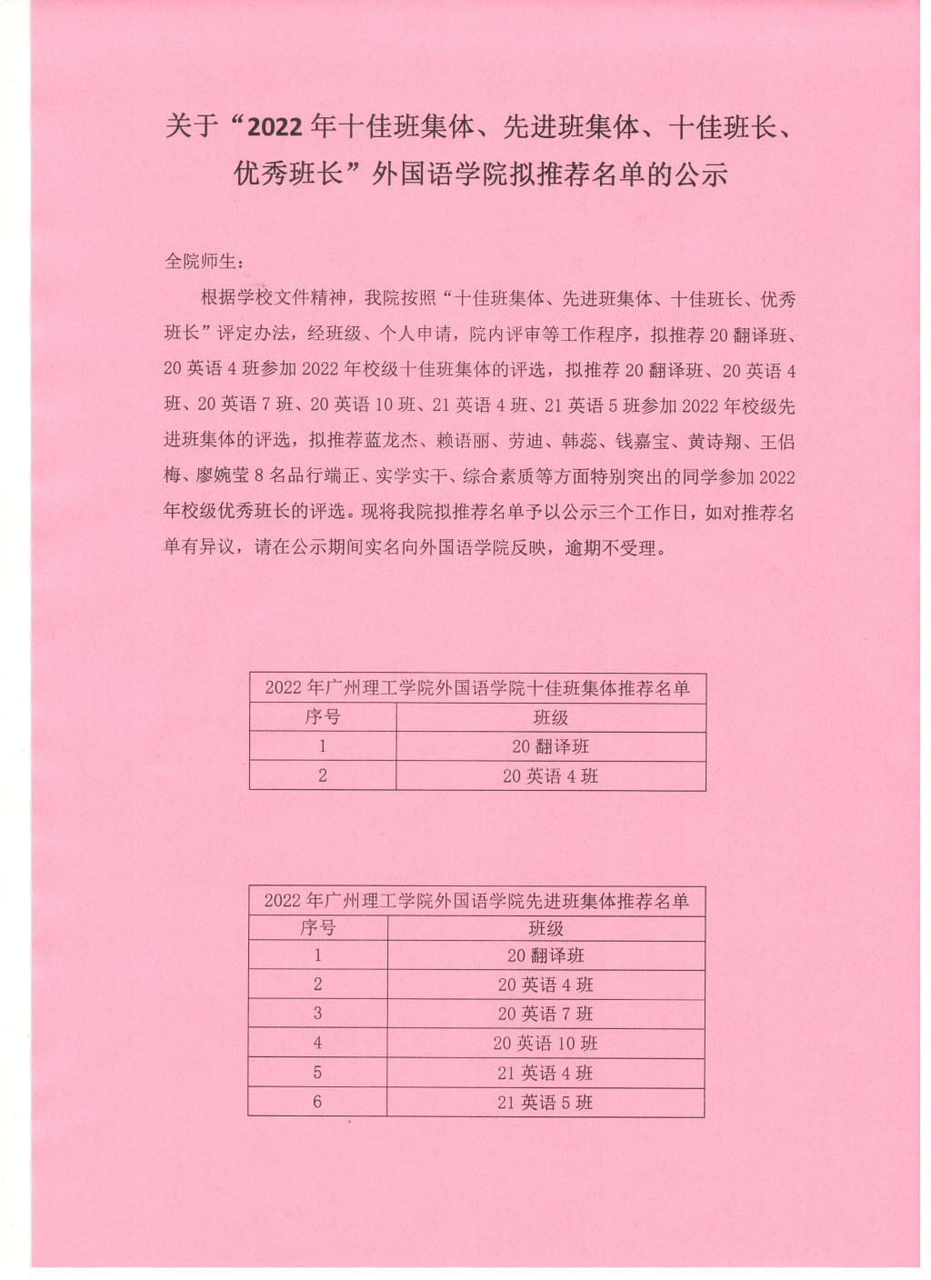 太阳成集团tyc关于2022年校级十佳班集体、先进班级体、十佳班长、优秀班长拟推荐名单的公示