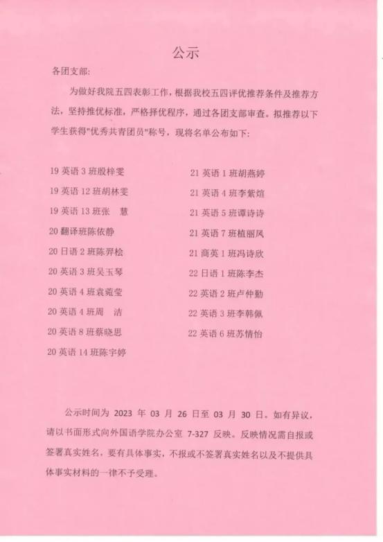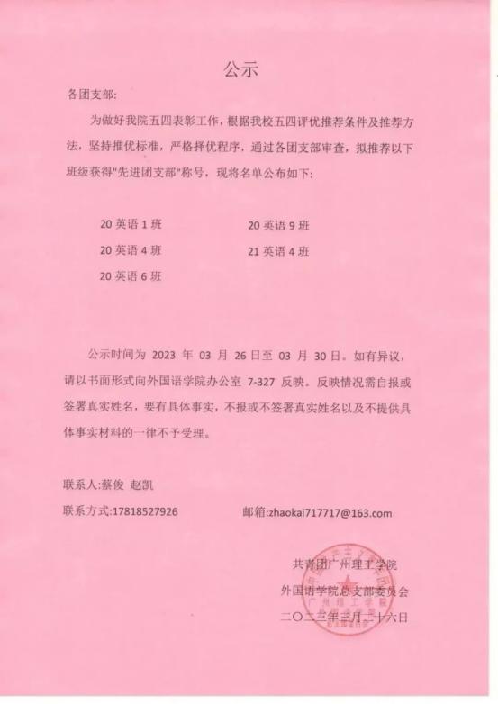 为深入学习贯彻党的二十大精神, 落实习近平总书记关于青年工作的重要思想,全面加强从严治团,有效提升基层团组织的活力和战斗力,充分发挥先进典型的示范引领作用,激励公司各团组织和广大团员、团干部锐意进取、创先争优,根据《共青团中央评比表彰管理办法》《广东省内表彰实施办法(暂行)》有关要求,结合公司共青团工作实际,现对2022-2023年度先进集体和先进个人进行公示。