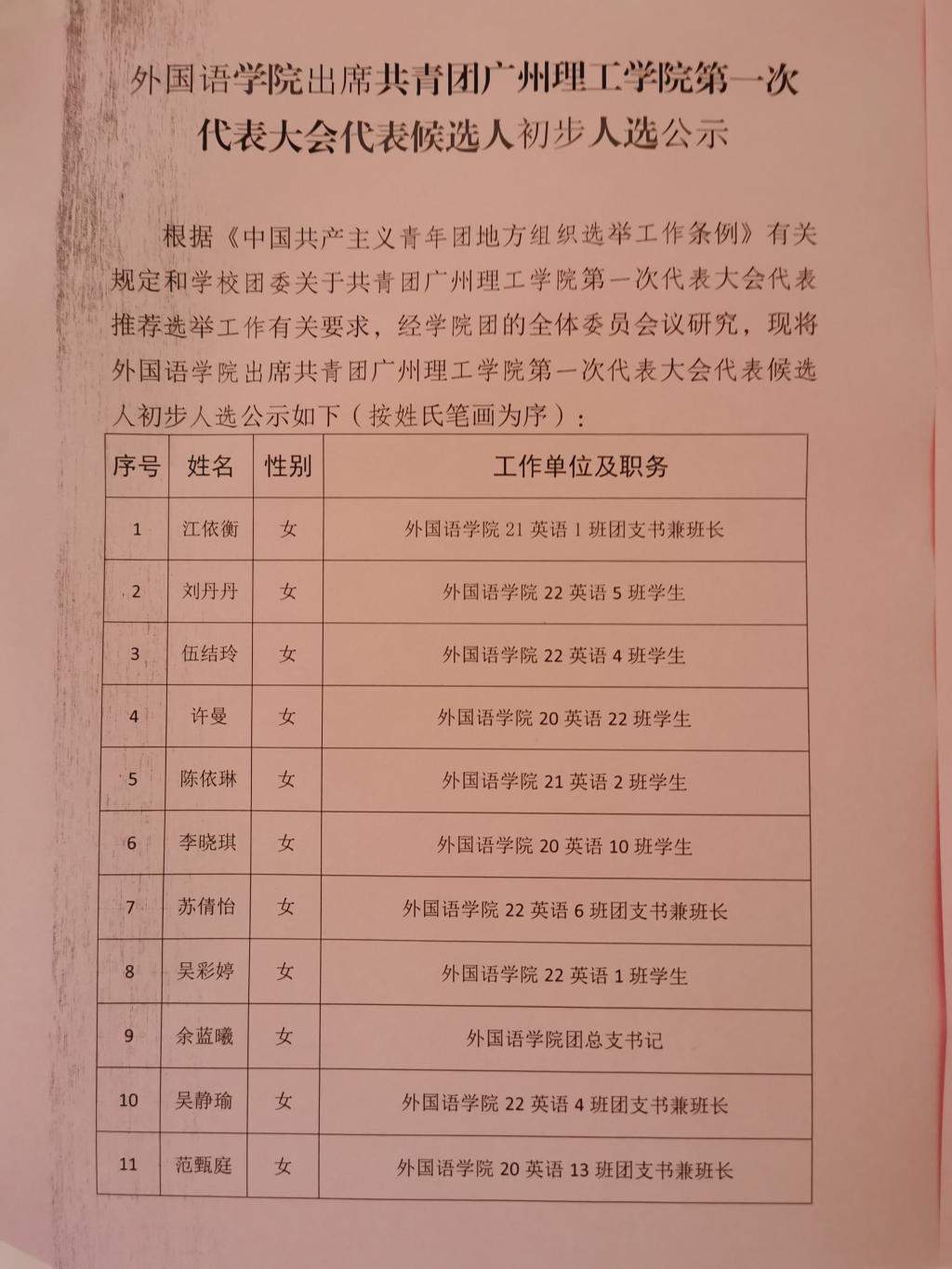 太阳成集团tyc出席共青团太阳成集团第一次代表大会代表候选人初选人公示