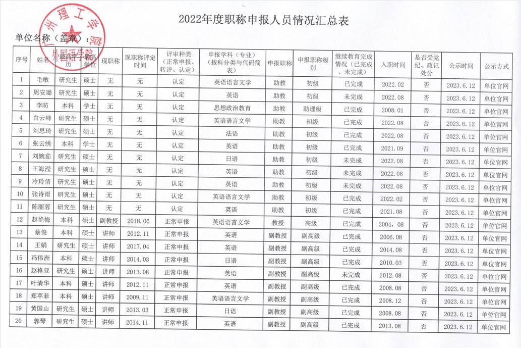 太阳成集团tyc关于赵艳梅等20位老师申请晋升职称的公示