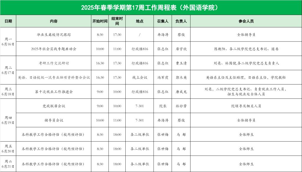 2025年春季学期第17周工作周程表