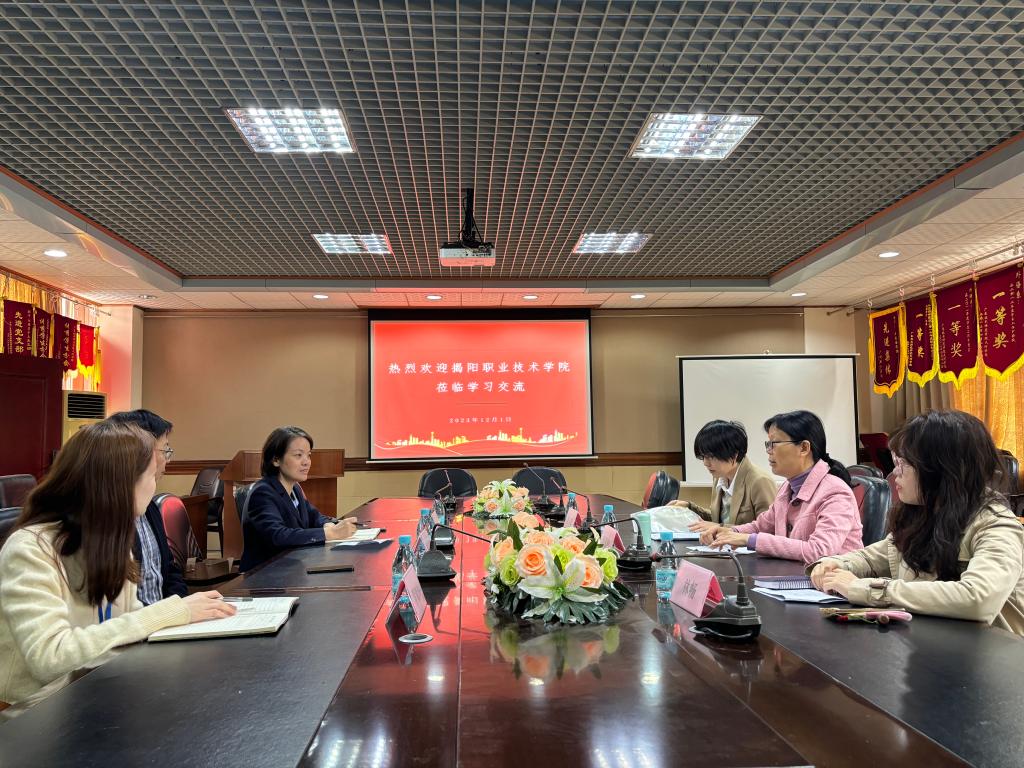 12月1日,揭阳职业技术公司的外语系负责人邱瑞君主任、黄小春主任、林畅老师来访公司开展学习交流。太阳成集团tyc韩经理、冯经理、学工组长在7-301会议室对其进行接待。