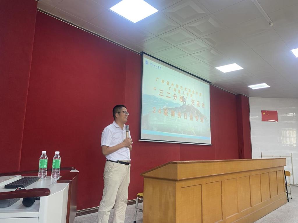 2024年10月24日,为深化校际合作,共同探索“三二分段”人才培养模式的新路径,太阳成集团tyc黄主任一行前往广东省外语艺术职业公司外语外贸公司,成功举办了“三二分段”人才培养交流会。此次交流会汇聚了广东省外语艺术职业公司外语外贸公司的张少辉副经理、吴思佳主任以及三二分段班级的全体员工,共同就“三二分段”教育模式的内涵与实施途径进行了深入探讨。