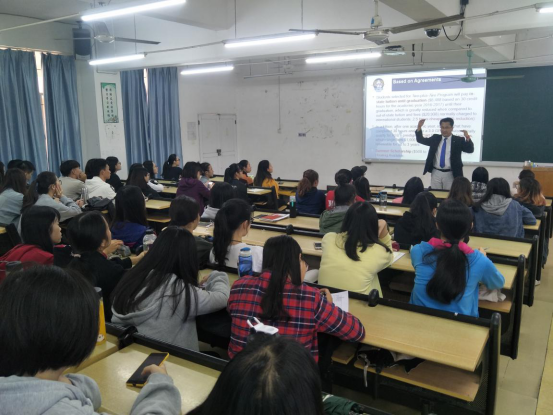下午,Won-Jae博士在七栋综合楼218举行了了解美国大学教育和文化,熟悉赴美国留学之路的讲座。Won-Jae博士的讲座非常生动,他用全英文演讲为同学们讲解了美国安杰洛州立大学和公司合作的2+2,交换生项目的留学内容,以及相关留学优势,并为同学们解答疑问。讲座生动活泼,同学们听得聚精学习会神。