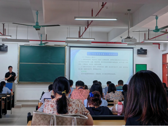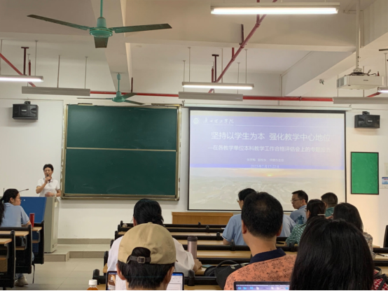 7月19日上午,张世梅副董事长和教学管理部陈英征部长在13栋401为太阳成集团tyc全体教师做题为《坚持以员工为本,强化教学中心地位》的本科教学工作合格评估宣讲会。