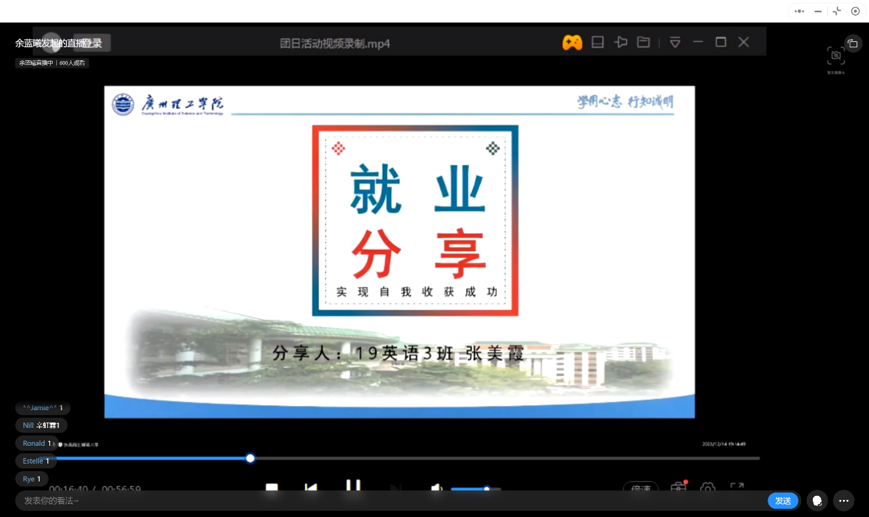 会议伊始,班会主持人邀请了19届、20届等多位优秀毕业生为同学们介绍自身经历及经验。他们向大家详细讲解了自己求职的经过,并通过自己的经历强调了求职时所需要注意的事项。同时,他们还通过图文演示等方式为大家讲解了自身专业方向的职位要求及求职者所需要具备的条件,并且传授了同学们有关的求职方式与技巧。