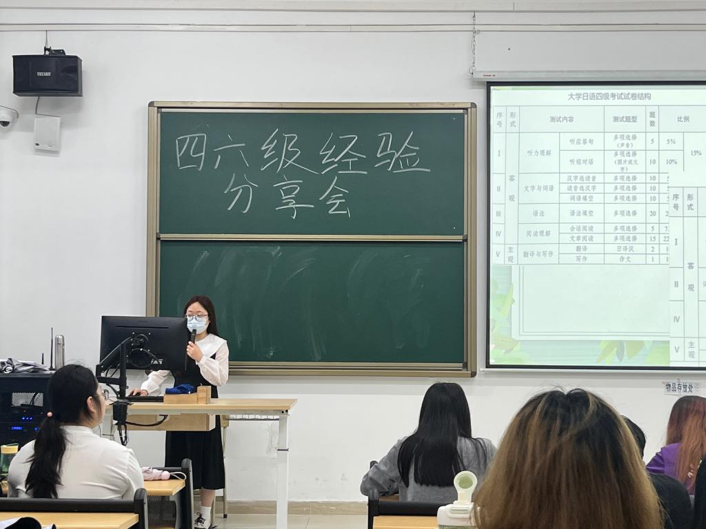 为加强学风建设,帮助公司学子明确大学英语四、六级及大学日语四、六级备考方向,更好地备战冲刺考试。4月22日上午,太阳成集团tyc在6栋教学楼101教室开展大学英语四、六级及大学日语四、六级备考经验分享会。本次分享者为多位在大学英语四、六级及大学日语四、六级考试中取得佳绩的志愿者同学。21和22级员工参与。