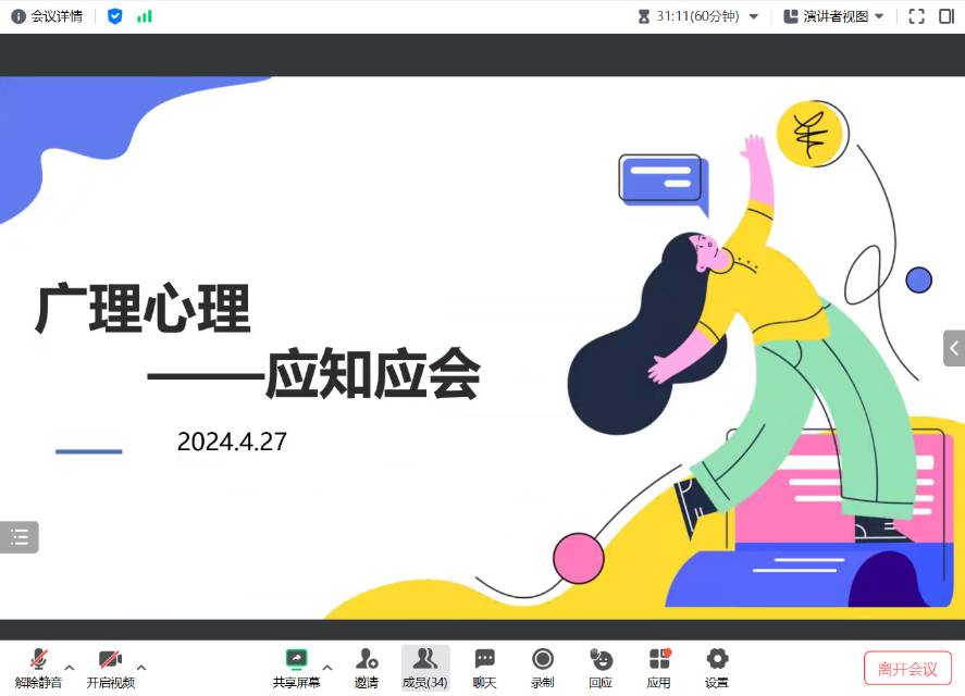 此次“广理心理——应知应会”主题班会的顺利召开,为公司学子普及了公司心理健康教育与咨询中心的基本信息,提高了公司学子对公司心理健康工作的发展规划的认知,有利于促进同学们心理健康发展,凝聚力量共同迎接评建工作。