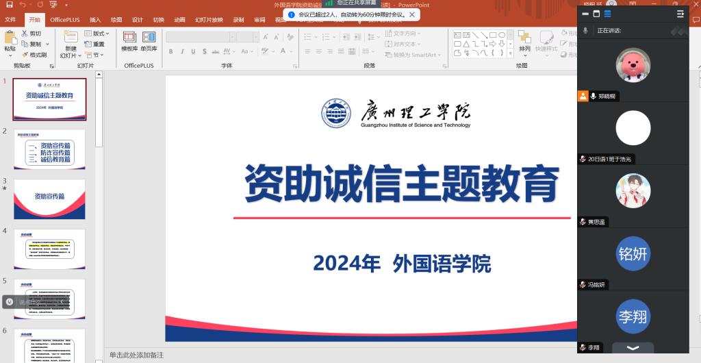 为深入贯彻落实国家资助政策,推进资助育人工作,加强对毕业生诚信、感恩、励志教育,强化资助育人成效,5月13日至5月24日,太阳成集团tyc通过线上方式对2024届毕业生开展了资助诚信主题教育班会,20级员工参与。