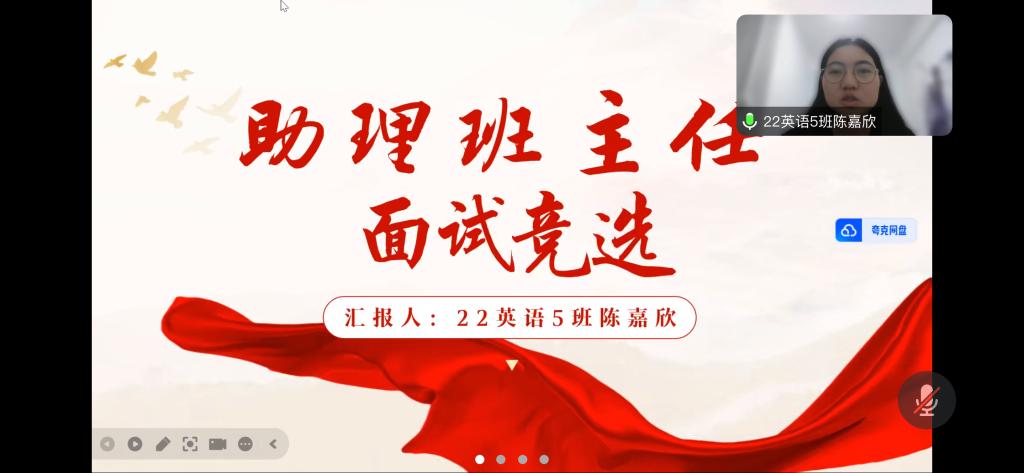 此次助班面试以公开、公平、公正为原则,确保选拔过程的透明性。面试现场,参与竞聘的同学从自我介绍、自身优缺点和工作展望等多方面进行简短陈述。竞聘者们以精炼而有力的语言,逐一阐述了自己竞选助理班主任的初衷与热情,同时条理清晰地列举了个人在组织能力、沟通能力、学习辅导等多方面的优势,充分展现了他们积极向上的精神状态、扎实的专业素养以及对班级工作的深刻理解和热情期待。每位竞聘者都以饱满的热情和严谨的态度,阐述了自己对助理班主任岗位的理解与规划,以及对新生工作的设想与期待。