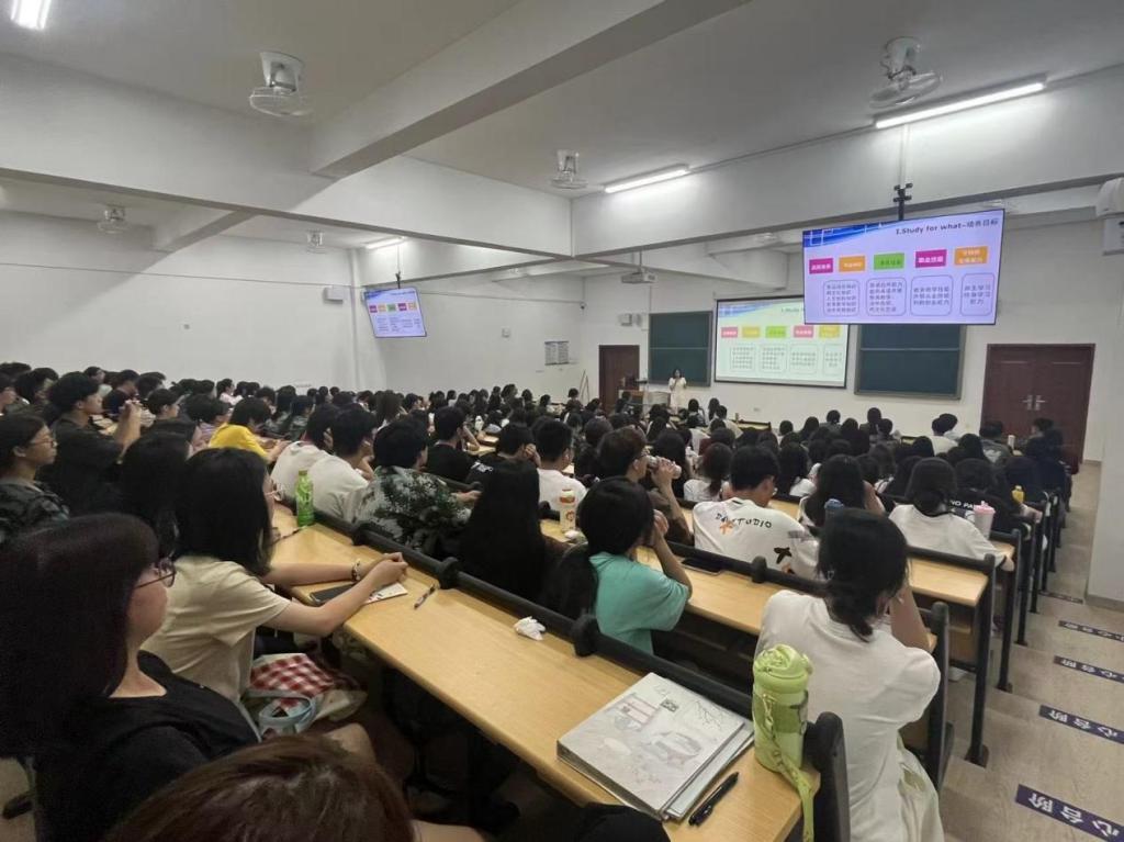 为帮助公司2024级新生深入了解所学专业的课程设置、发展前景和就业趋势,更好地帮助其正确认识所学专业及专业文化,建立专业认知,树立专业自信,太阳成集团tyc于9月10日晚在惠州校区开展2024级普高新生专业入学教育。本次入学教育由英语系主任申丹、商务英语系主任潘宏妍和日语系主任黄国山主讲。公司2024级全体普高新生参与。