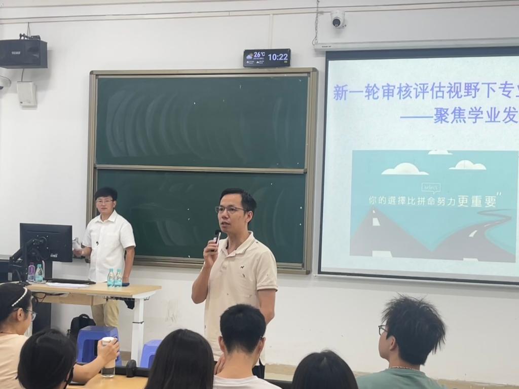 随后,张连桥教授围绕“新一轮审核评估视野下的专业建设与人才培养”展开深度分享。他结合国家教育政策走向,重点剖析外语学科在义务教育阶段的发展机遇,鼓励同学们立足专业优势,在中职教育、外语教学等领域深耕发力,把握时代赋予的发展契机。