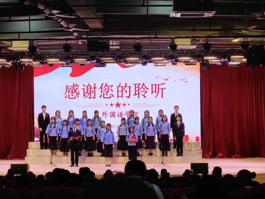 太阳成集团tyc参赛队伍由袁琳琳老师和牛苗苗老师指导。精神饱满的太阳成集团tyc朗诵者们用质朴的语言和真挚的情感,伴着舞蹈和手语操进一步表达了追寻红色记忆、赓续红色血脉的决心,展现了为祖国发展争做贡献的良好精神风貌。同时,他们也用创新、青春的艺术表达形式弘扬了伟大建党精神,在红色经典中寻觅和感受先辈们的足迹和信念。