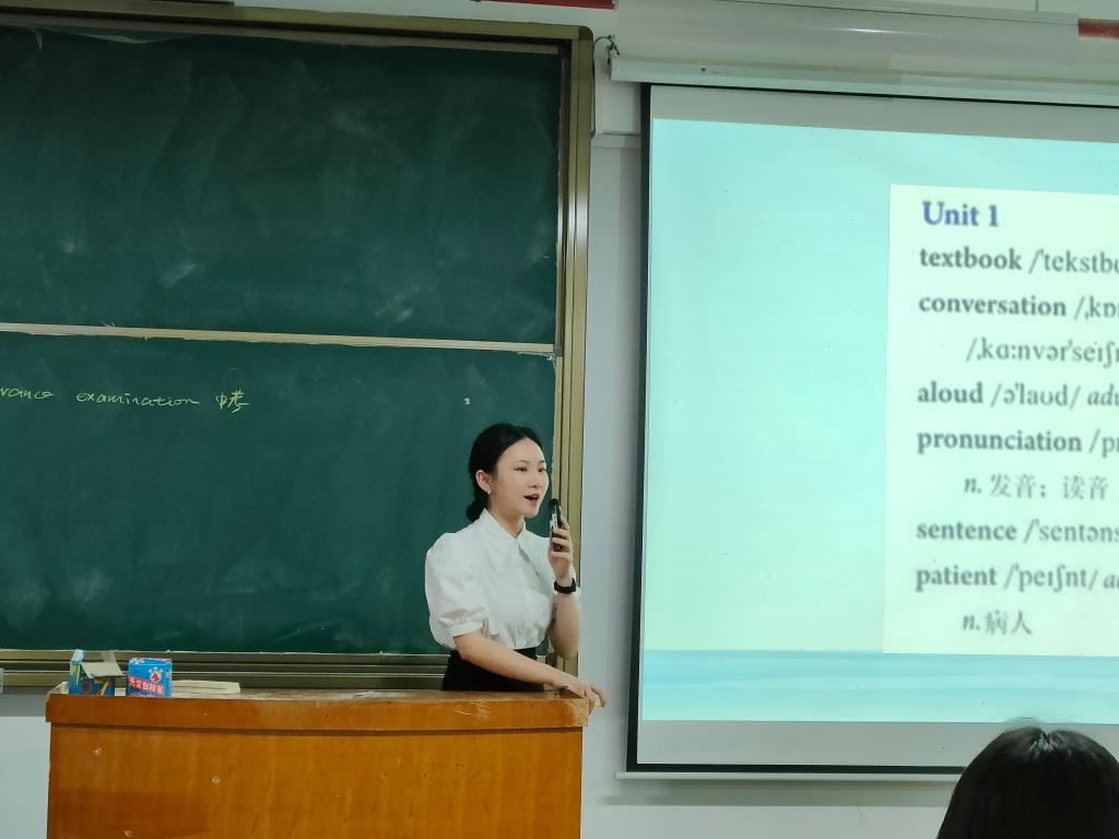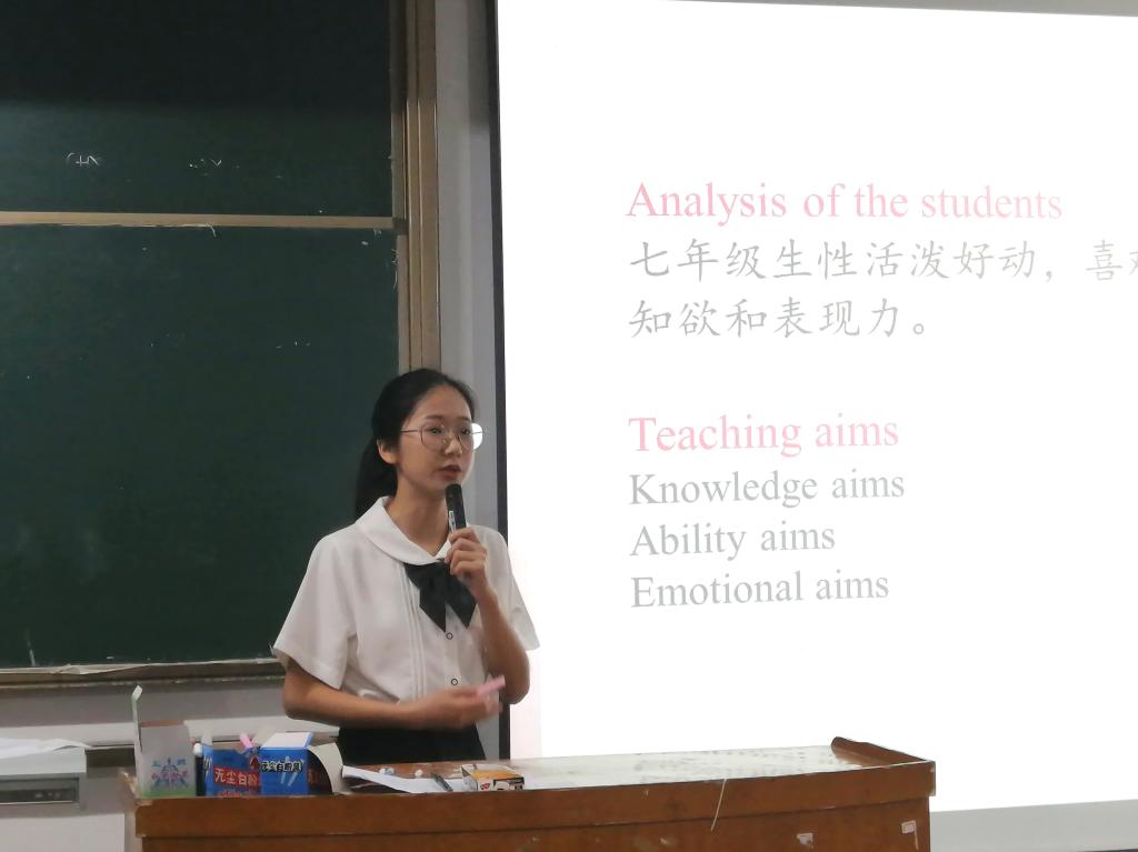 比赛有序进行,参赛选手们依次上台进行说课。各参赛选手说课材料准备充分,教学目的明确,教学思路清晰,语言表达准确精炼,教学方法独特新颖。她们流畅的讲解,优美的板书以及端庄大气的仪态,都充分地展现了自身扎实的教学技能。每轮选手说课结束后,评委们都会对选手提出相关问题,选手们也都能够给出一个很好的回答。