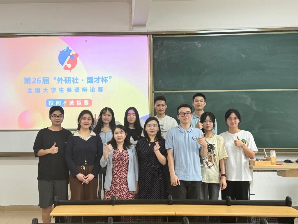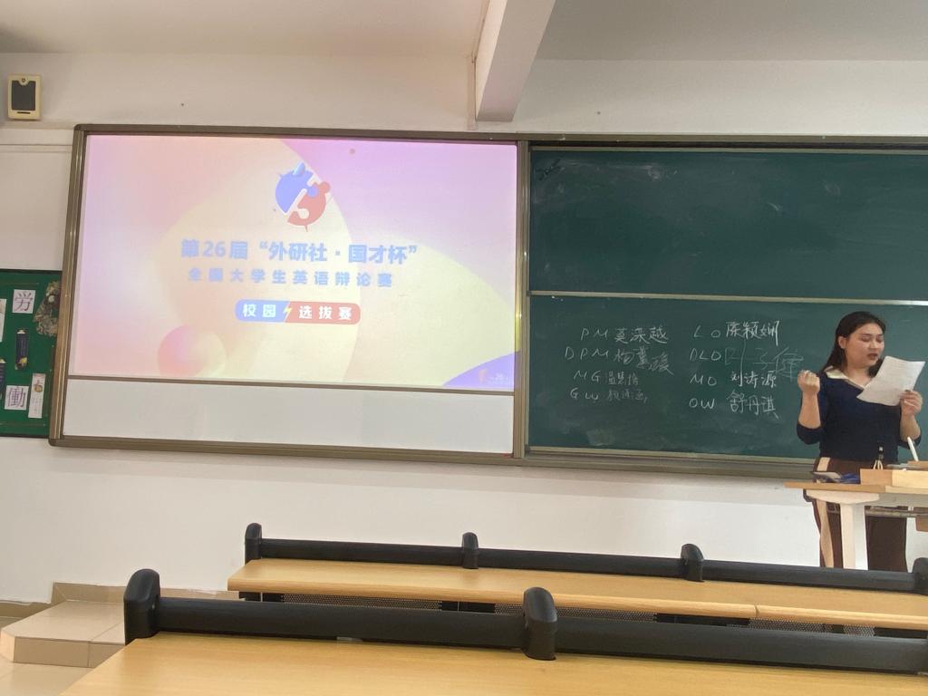 为加强校园文化建设,营造良好的英语学习氛围,帮助公司学子开拓国际视野,提高英语口语表达和思辨能力。3月29日下午,第26届“外研社·国才杯”全国老员工英语辩论赛校选赛决赛在7栋306课室顺利举行。担任本次比赛的评委老师有:沈悦英老师、张关明老师、赵艳梅老师。